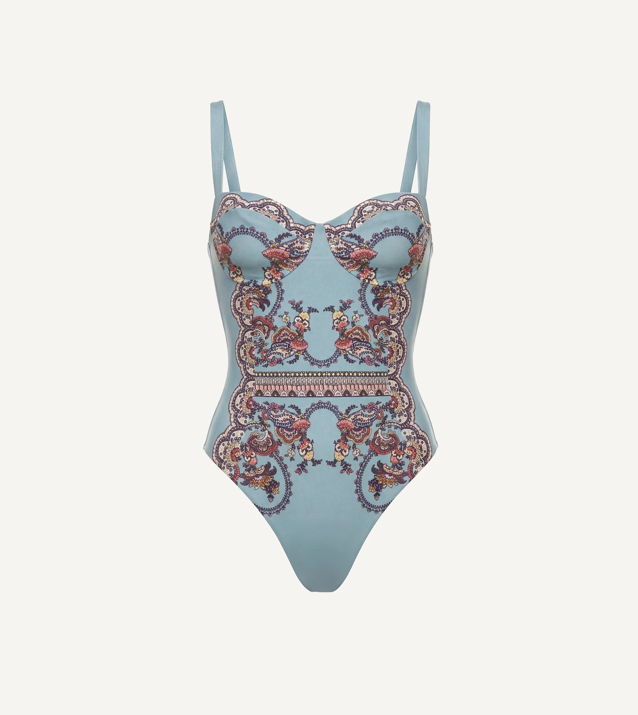 The Fiorella one piece features a bustier-inspired bodice with underwire for support. Cleobella's premier swim collection is perfectly designed silhouettes that form and flatter so you can enjoy every moment and inspire new memories.