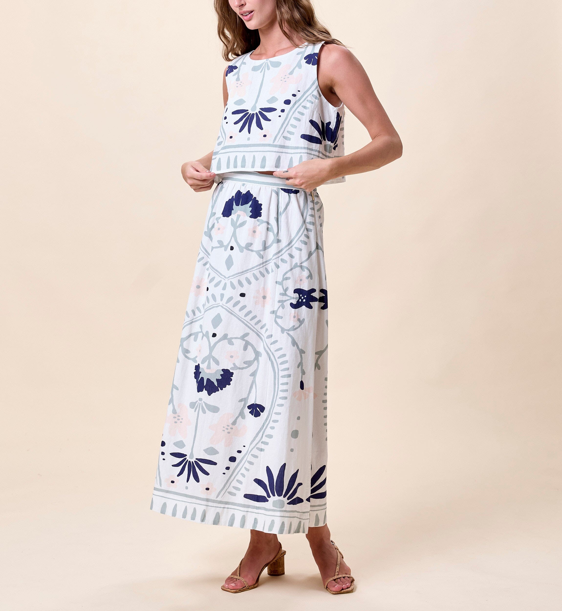 Ethically handmade in India from a cotton-linen blend, the Juliet Ankle Skirt features a flattering A-line silhouette with an elasticated waistband at the back for an easy, comfortable fit. Perfect for pairing with swim or any of our tops, it’s made to move with you from sun soaked days to vacation nights. Pair with the Venetia Top for the perfect matching set.