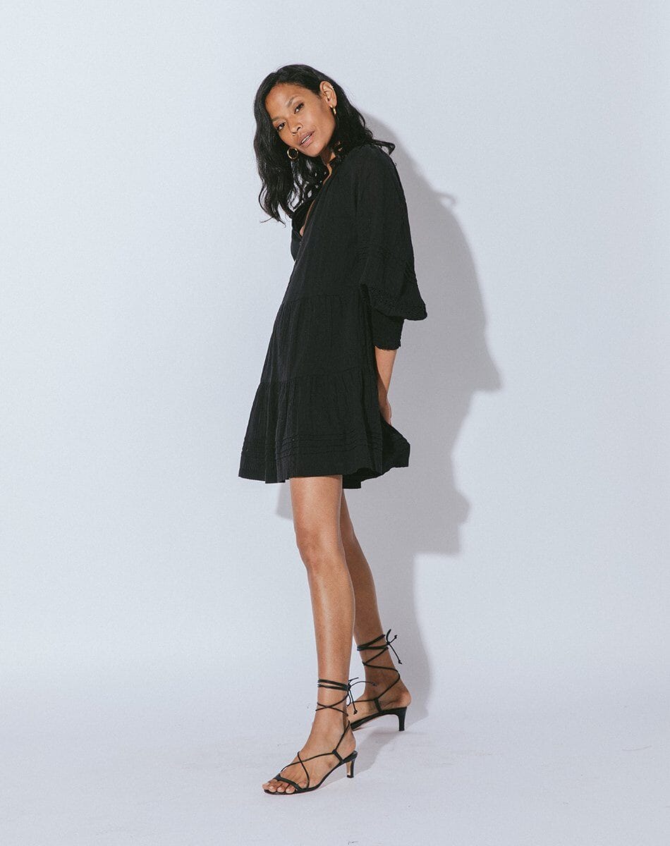 Effortlessly feminine and sustainably made. The Meadow Mini Dress is crafted from 100% GOTS certified organic cotton in a breezy seersucker fabric. Featuring a ruffled V-neckline, lace trimmed sleeves, and a removable waist tie, it’s designed for relaxed days with a romantic touch.
