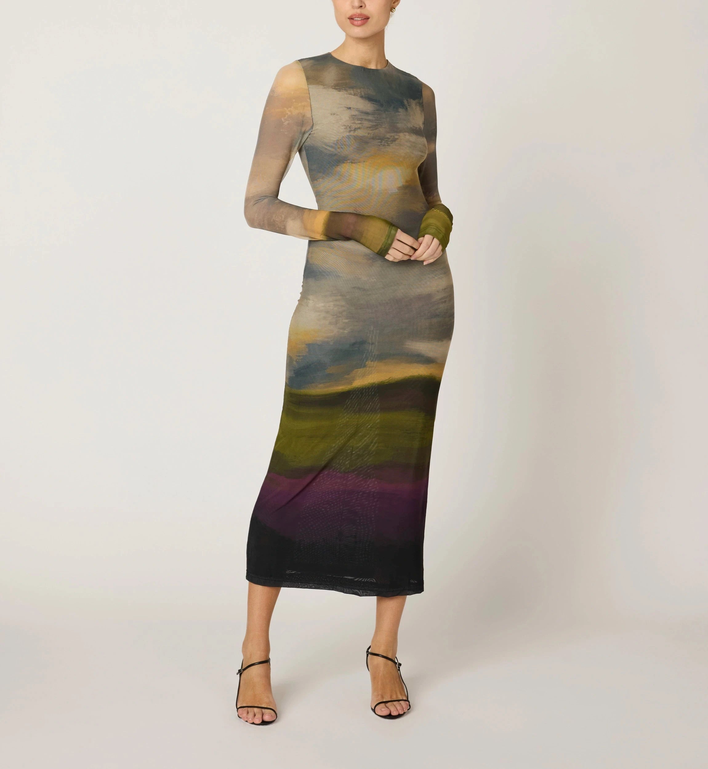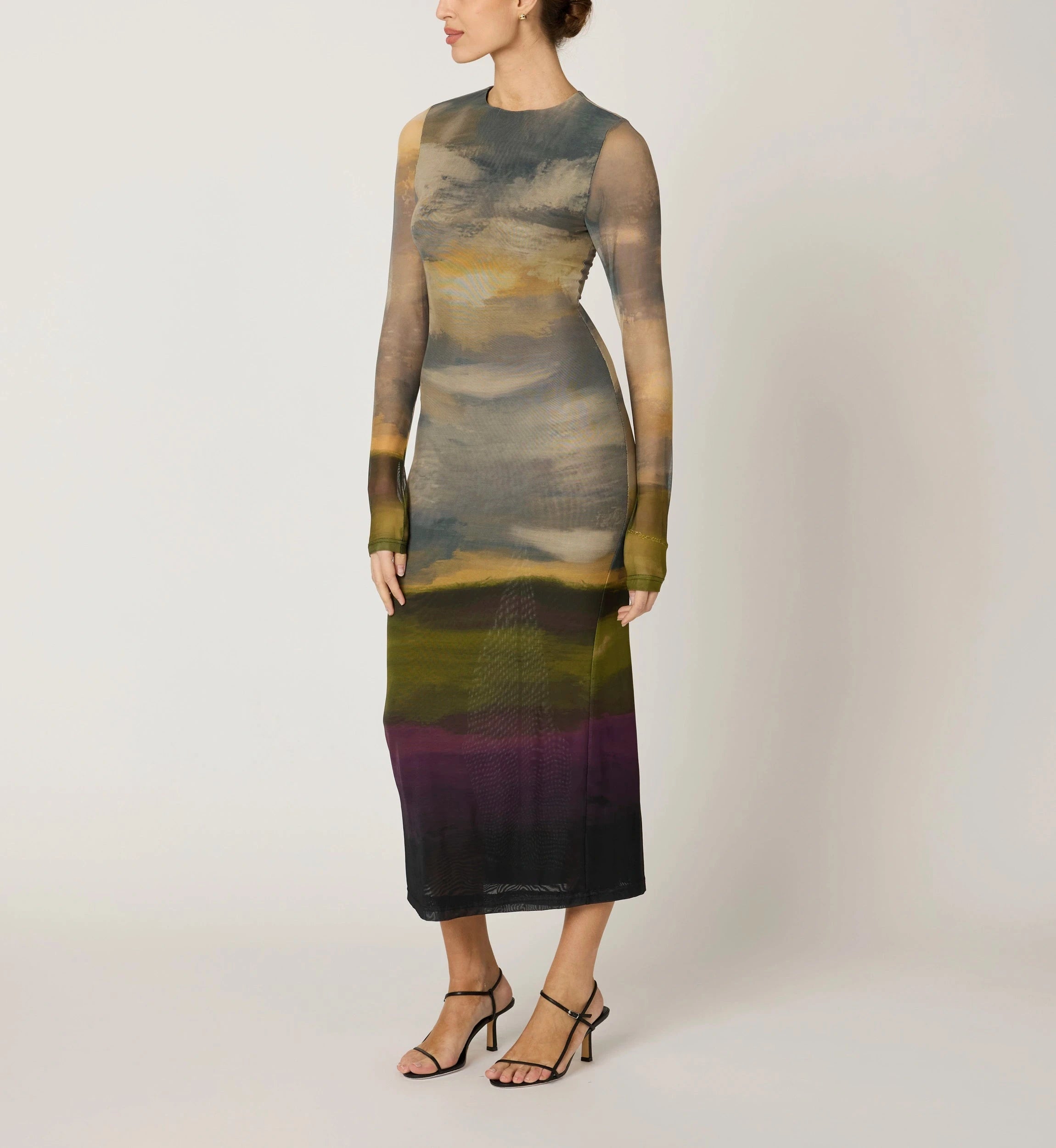 Ethically handmade in India from 88% recycled nylon and 12% elastane, the Persephone Ankle Dress is a sustainably crafted statement piece designed to stand out. This fitted mesh ankle-length dress features a hand-painted design and a delicate keyhole button closure at the back neck. Elegant and chic, it’s the perfect dress to elevate any fall occasion.