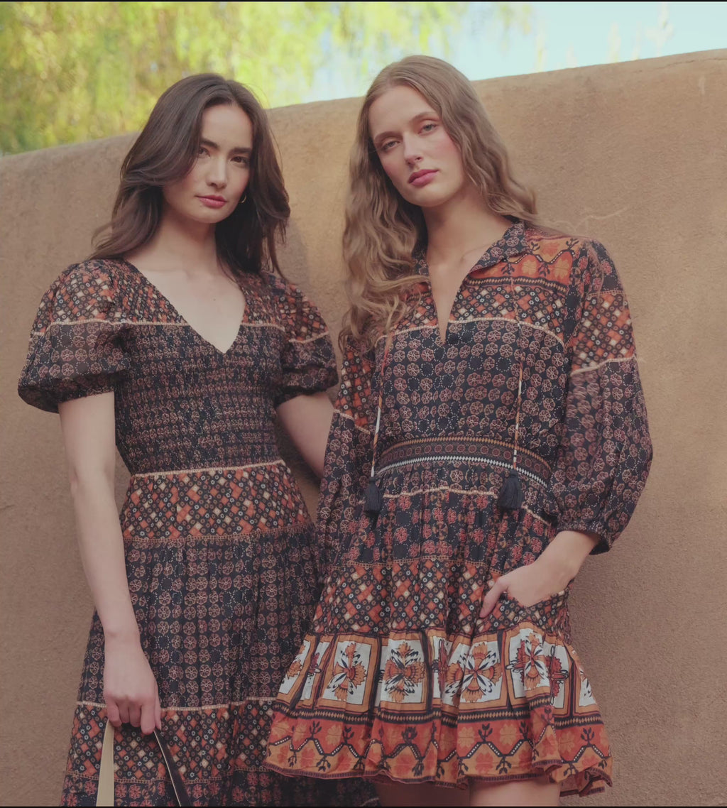 Ethically handmade in India from 100% GOTS certified organic cotton, the Priyanka Mini Dress flows effortlessly in our fall-favorite Zocalo print, making it a carefree, throw-on-and-go favorite. The 3/4 sleeves and delicate tassels at the neck ties add subtle, playful detail. Pair with your favorite boots and a relaxed leather jacket, or let it shine on its own with simple sandals for an easy, sunlit afternoon look.
