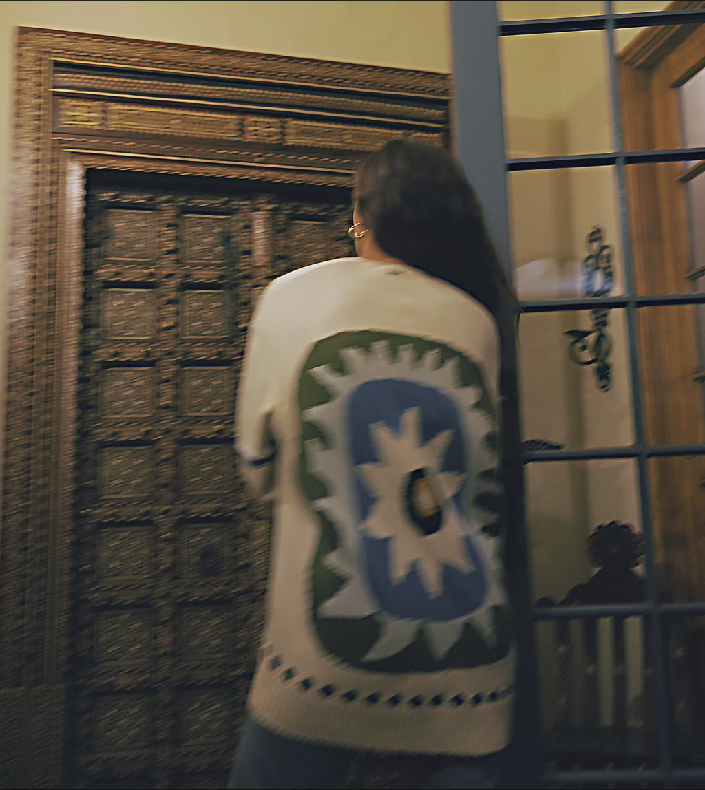The Rumer Sweater is a statement-making, oversized cardigan crafted from 100% GOTS-certified organic cotton yarn. Designed for effortless layering, this throw-on silhouette features thoughtful rib detailing and a relaxed fit that drapes beautifully. The standout element lies in the bold artwork showcased on the back—a vibrant, artisan-inspired motif that brings personality and charm to the piece. Cozy, breathable, and undeniably eye-catching, the Rumer Sweater is the perfect blend of comfort and artistry.