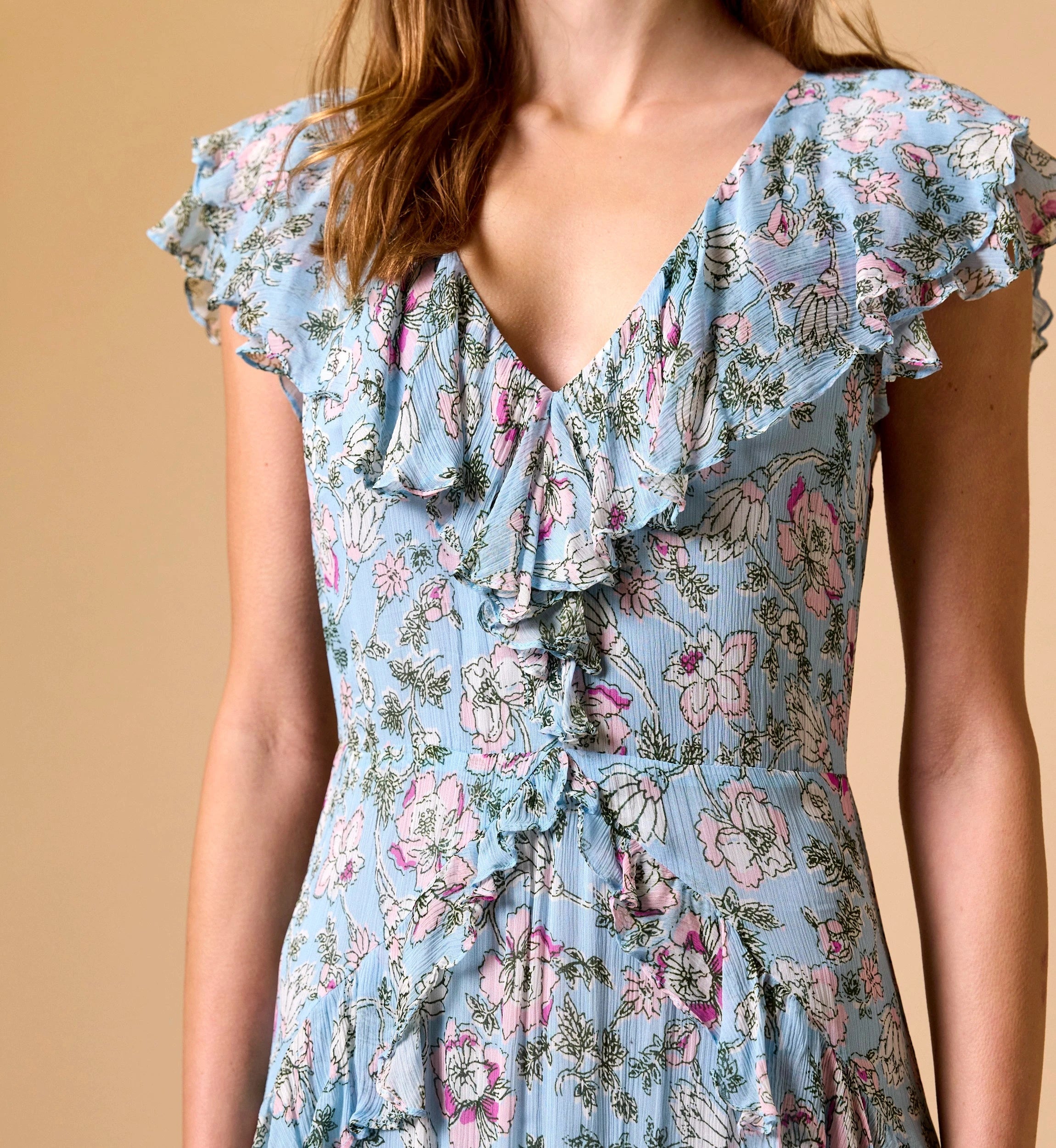 Crafted from 100% viscose, the Sabina Ankle Dress is an effortless spring staple made for sun filled days and evening wanderings. Designed in airy crinkle chiffon with soft short ruffle sleeves, its breathable, flowy fabric and romantic silhouette strike the perfect balance of ease and elegance. A timeless piece you’ll reach for season after season in your sustainable wardrobe.