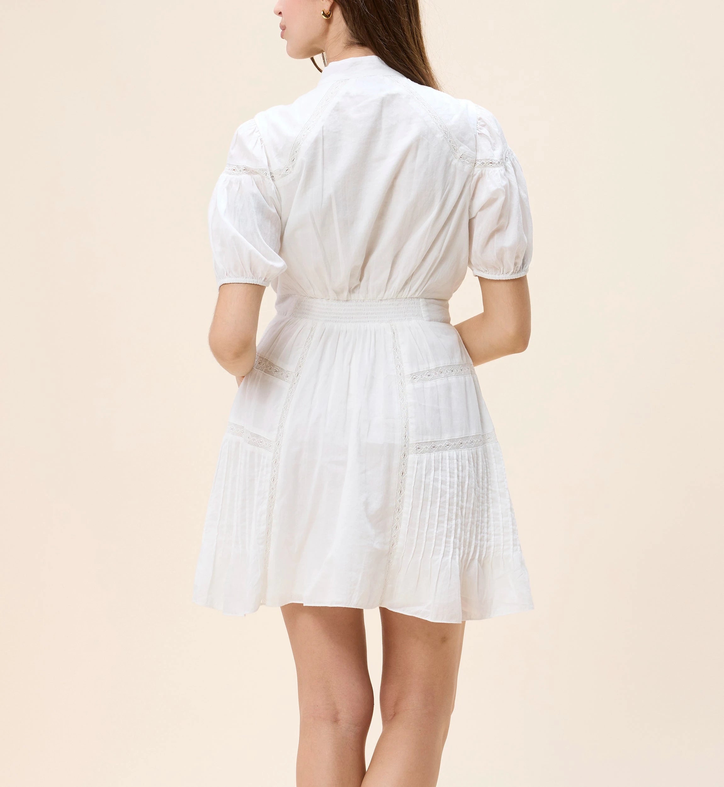 Meet the Signe Mini Dress, a playful yet polished statement piece. Designed with romantic puff sleeves, a row of buttons cascading down the front bodice, and delicate lace inserts for a soft feminine touch, this flirty mini is made to charm. Effortless and eye-catching, it’s the perfect dress for sunlit days and sweet spring nights.