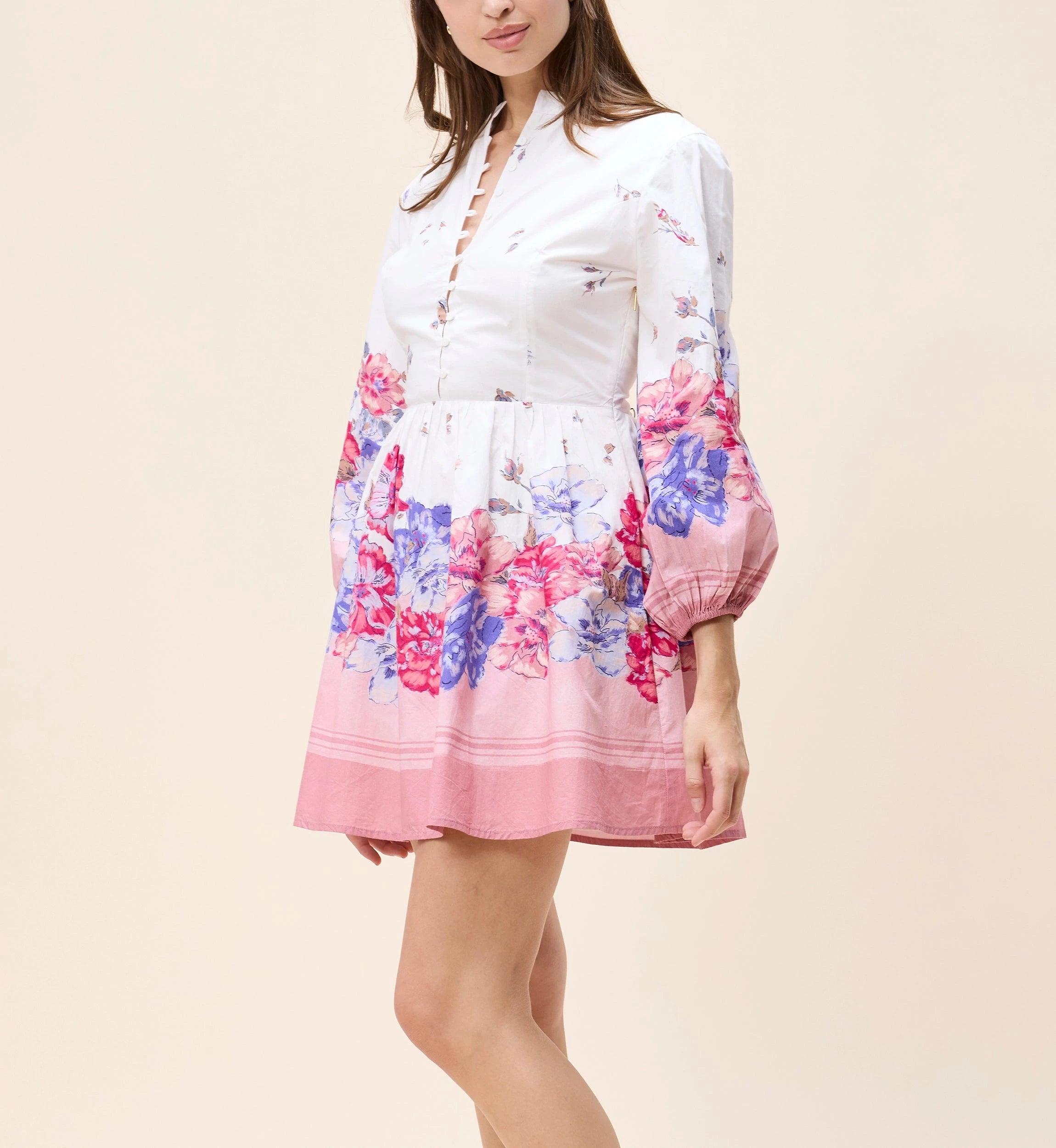The Suvi Mini Dress is a romantic, hand-crafted piece made from 100% GOTS-certified organic cotton poplin. Its structured button down bodice flows into a flattering fit and flare shape with thoughtfully placed floral details, while long sleeves with gentle elasticated cuffs add ease and effortless movement.