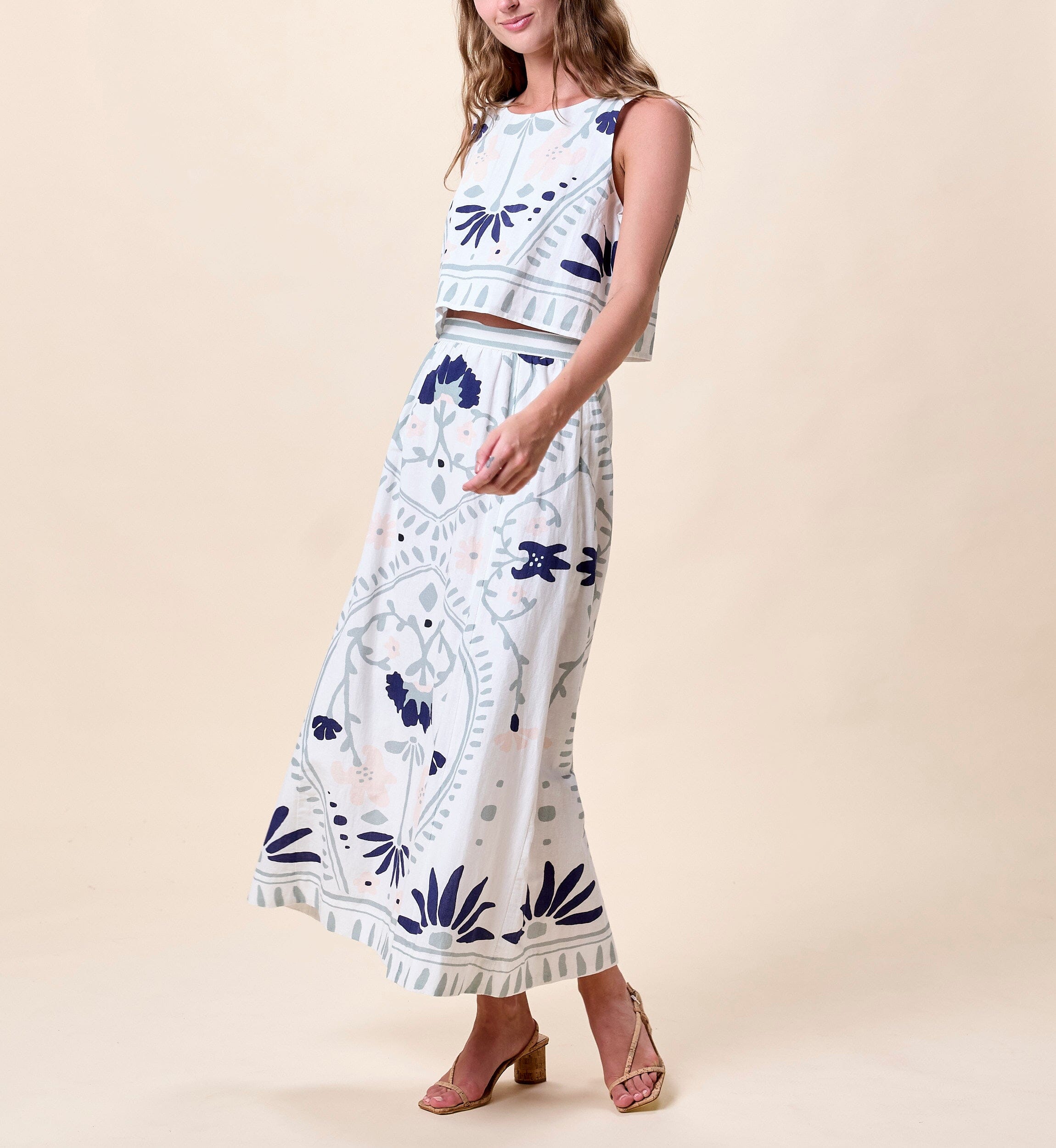 Made from a breathable cotton linen blend, the Venetia Top is a warm weather favorite with a light, airy feel. This sleeveless, cropped silhouette features a subtle keyhole with a button closure at the center back neckline for a delicate finishing touch. Pair it with the Juliet Ankle Skirt for the perfect matching set that takes you seamlessly from day to night.